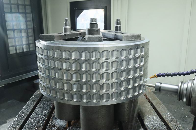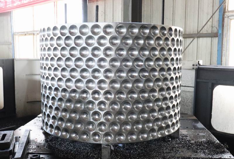 壓制成型:將混合物料放入輥皮壓球機,通過輥子的旋轉(zhuǎn)和擠壓,使物料形成球狀。